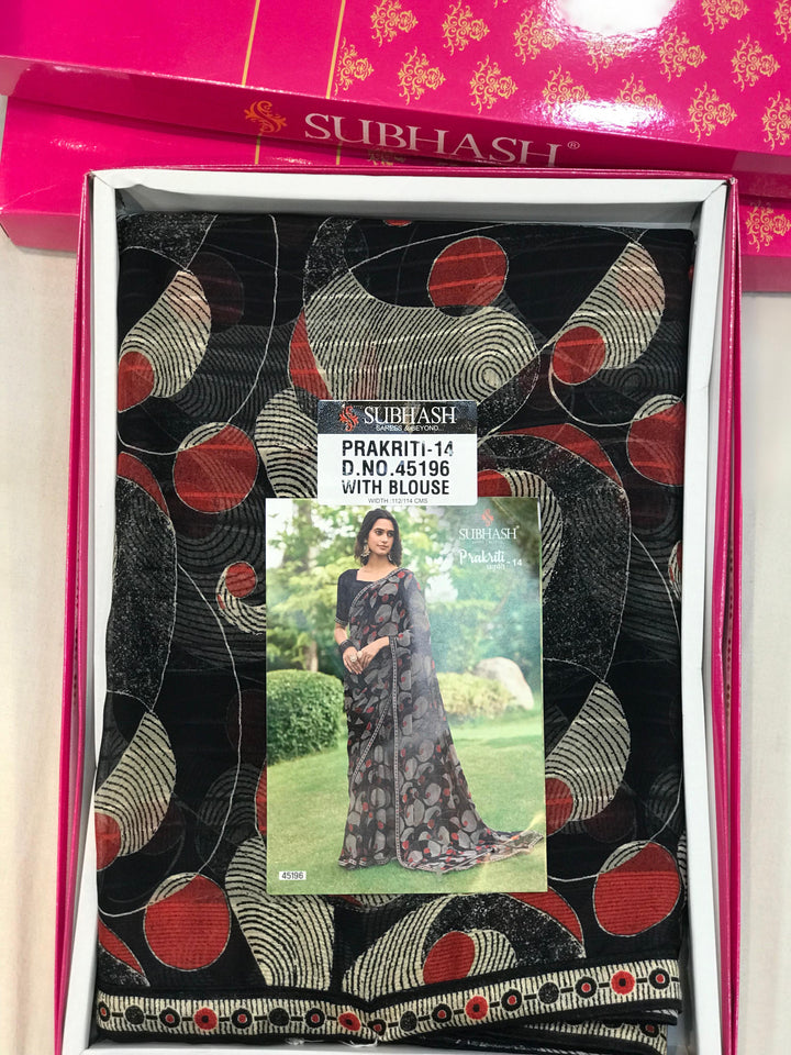 Subhash Prakriti-14 45196 - Black Georgette Drape By Sanskar Sarees