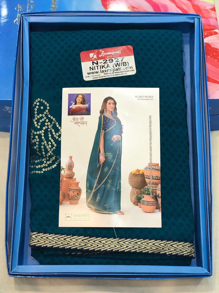 Laxmipati Ishita N-2927 - Peacock Georgette Drape By Sanskar Sarees
