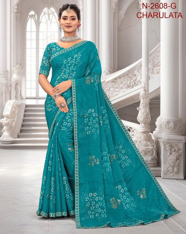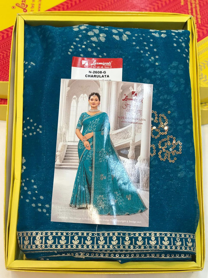 Laxmipati Charulatha N-2608-G - Blue Chiffon Butti Drape By Sanskar Sarees