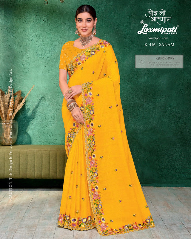 Laxmipati Mangla Gauri K-416 - Yellow Chiffon Drape By Sanskar Sarees