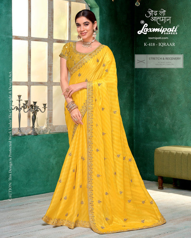 Laxmipati Mangla Gauri K-418 - Yellow Sparkle Chiffon Drape By Sanskar Sarees
