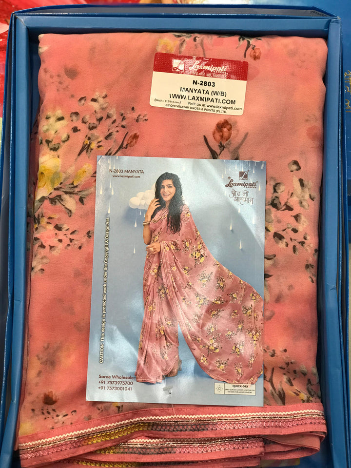 Laxmipati Sadhana N-2803 - Pink Georgette Drape By Sanskar Sarees