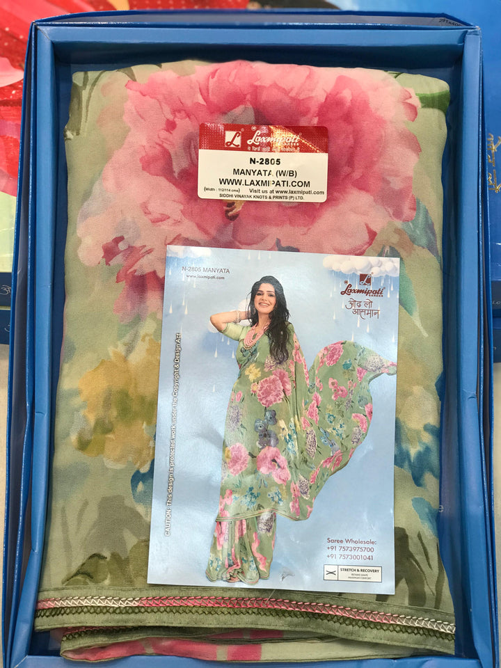 Laxmipati Sadhana N-2805 - Dark Pista Georgette Drape By Sanskar Sarees