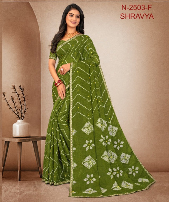 Laxmipati Shravya N-2503-F - Mehendi Dotted Chiffon Organza Drape By Sanskar Sarees