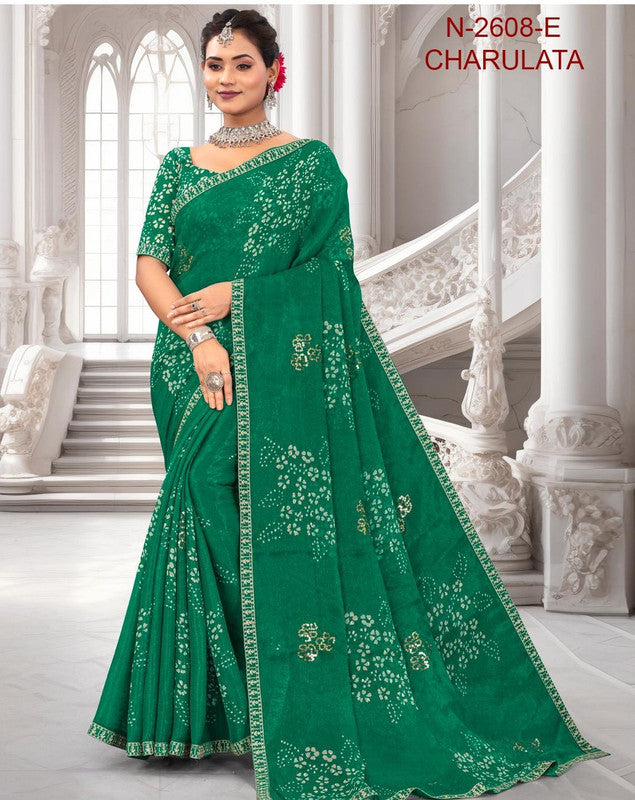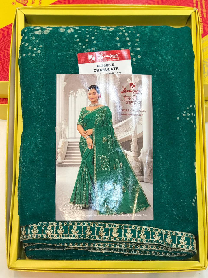 Laxmipati Charulatha N-2608-E - Green Chiffon Butti Drape By Sanskar Sarees