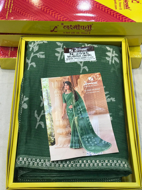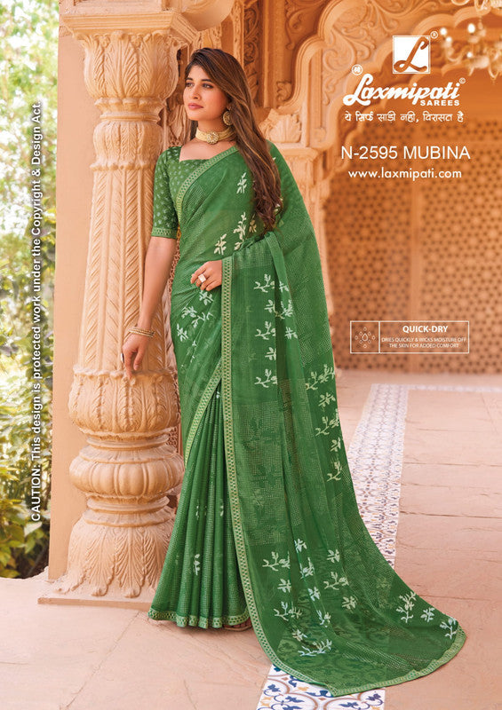 Laxmipati Madhubala N-2595 Green Sparkle Chiffon Saree