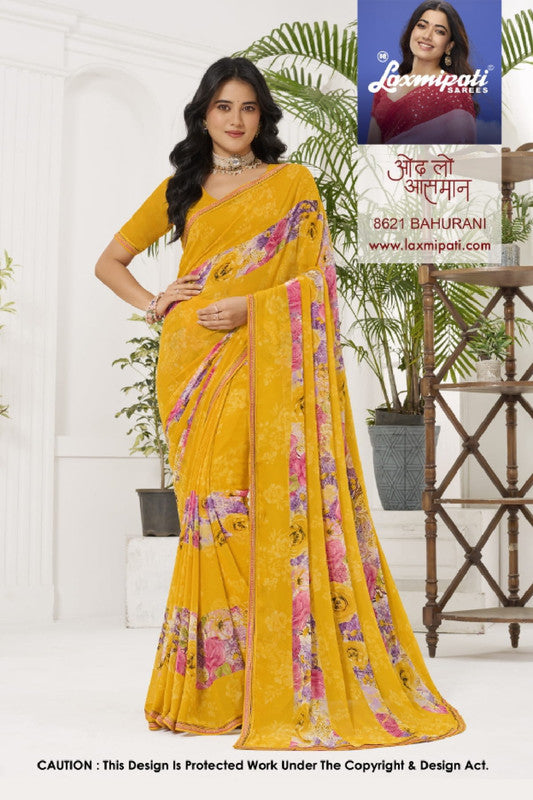 Laxmipati Radha Rani 8621 - Yellow Georgette Drape By Sanskar Sarees