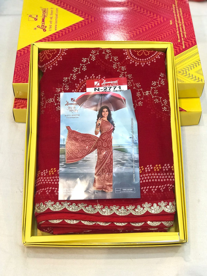 Laxmipati Radhika N-2771 - Red Georgette Chiffon Drape By Sanskar Sarees