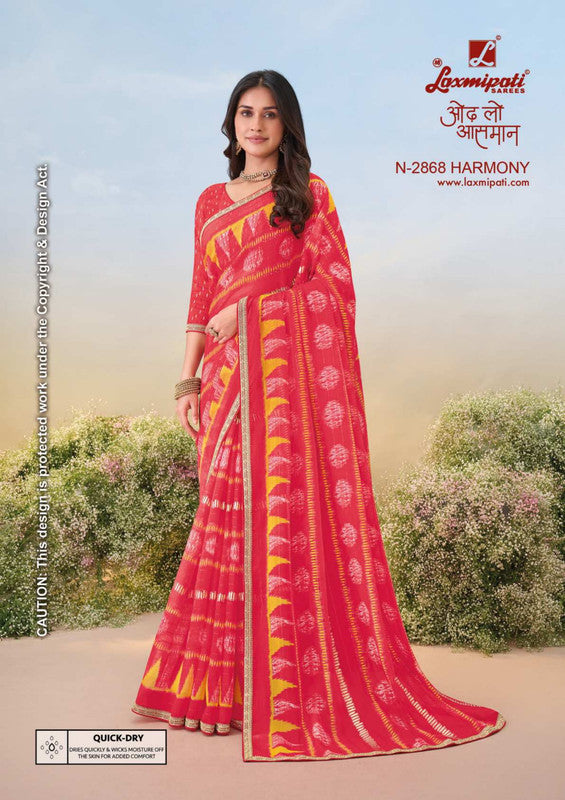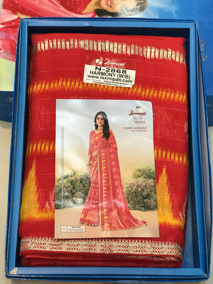 Laxmipati Anaya N-2868 - Dark Peach Chiffon Drape By Sanskar Sarees