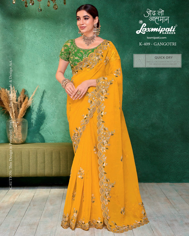 Laxmipati Mangla Gauri K-409 - Mustered Yellow Soft Organza Drape By Sanskar Sarees