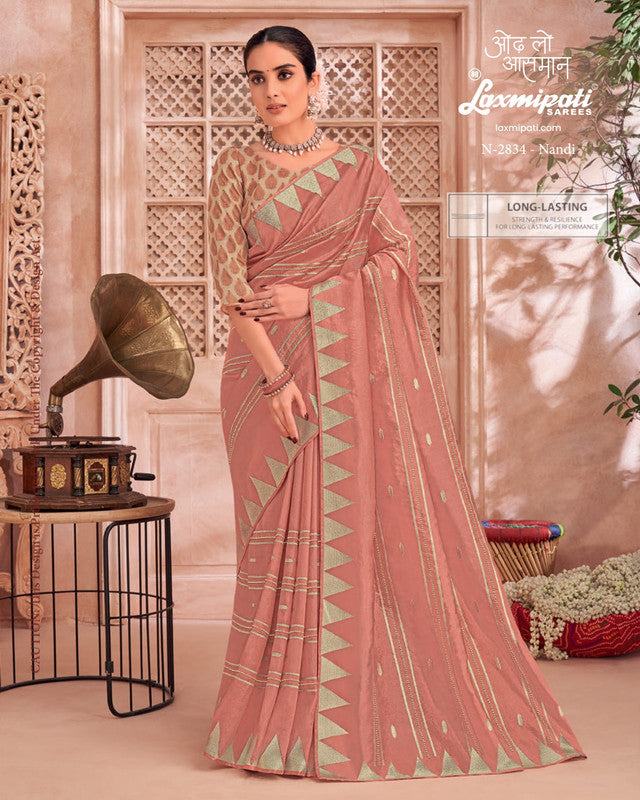 Laxmipati Udan Pari N-2834 - Peach Tissue Organza Drape By Sanskar Sarees