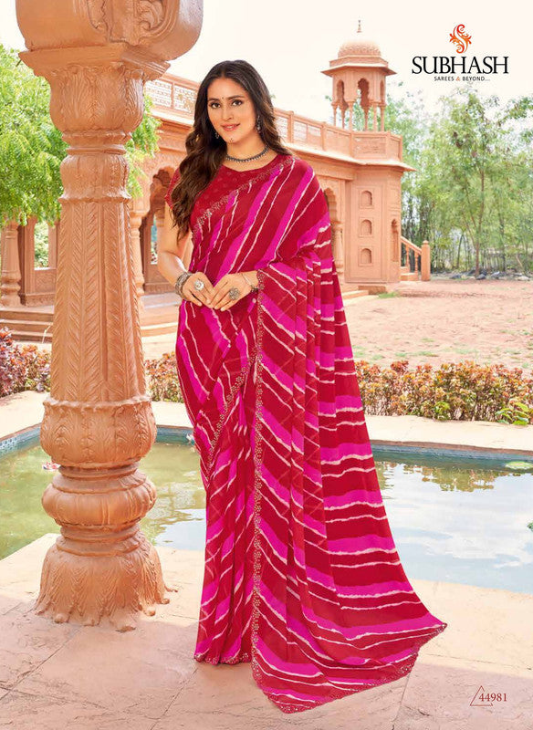 Subhash Gulaabi 44981 - Pink-Red Moss Chiffon Drape By Sanskar Sarees