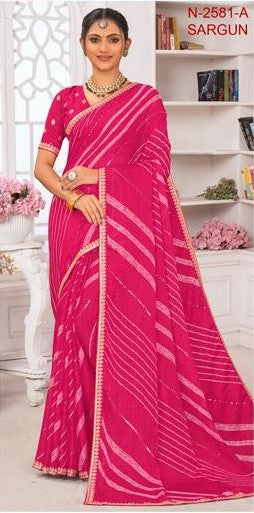 Laxmipati Sargun N-2581-A - Pink Chex Chiffon Drape By Sanskar Sarees