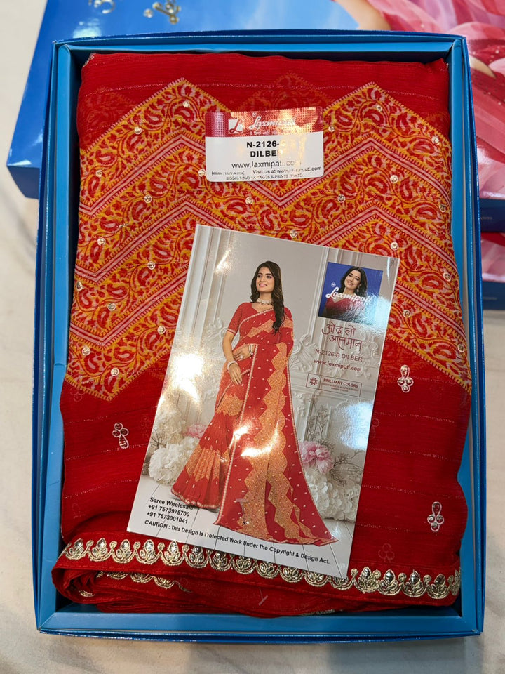 Laxmipati Dilber N-2126-B - Red Chiffon Drape By Sanskar Sarees