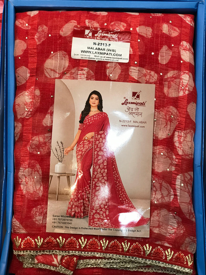 Laxmipati Malabar N-2213-F - Dark Peach Silk Chiffon Drape By Sanskar Sarees