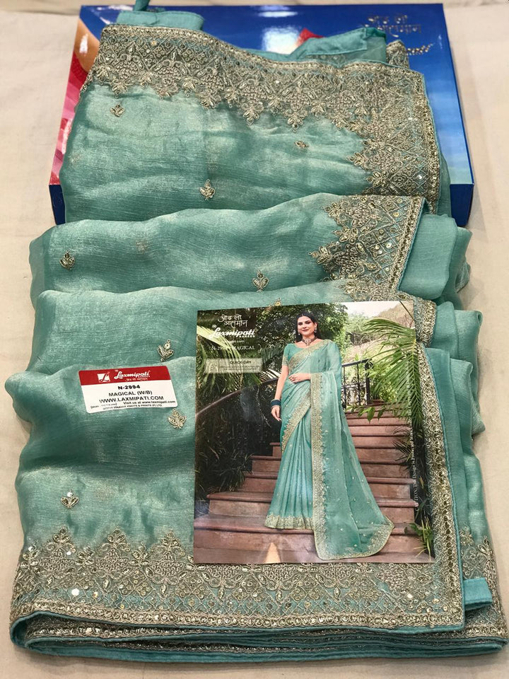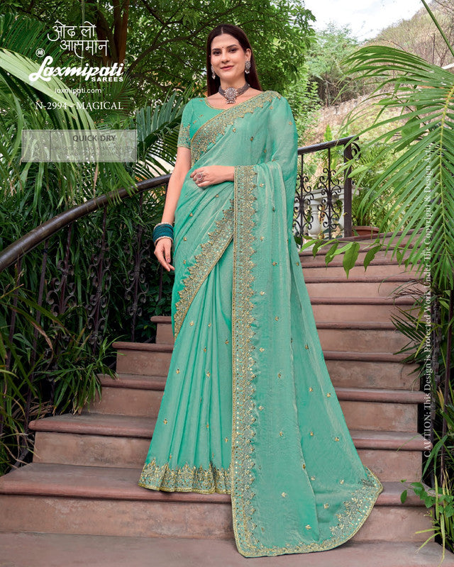 Laxmipati Uphaar N-2994 - Pista Sparkle Chiffon Drape By Sanskar Sarees