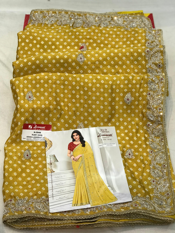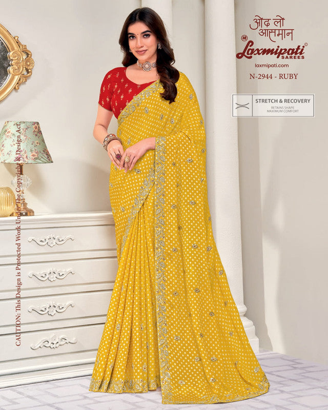 Laxmipati Totapuri N-2944 - Yellow Silk Chiffon Drape By Sanskar Sarees