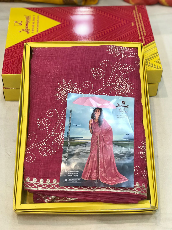 Laxmipati Radhika N-2783 - Light Onion Chiffon Drape By Sanskar Sarees