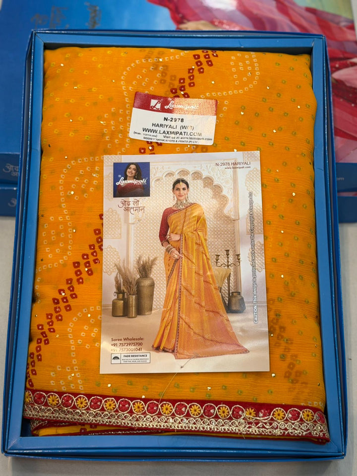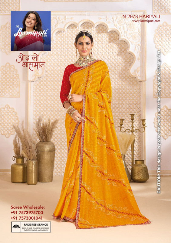 Laxmipati Ghoomar N-2978 - Yellow Chiffon Drape By Sanskar Sarees