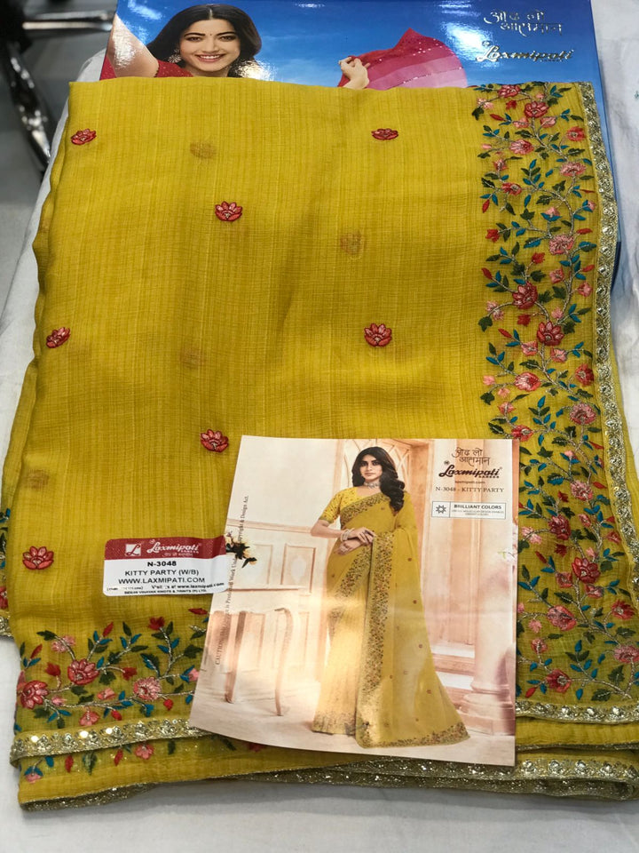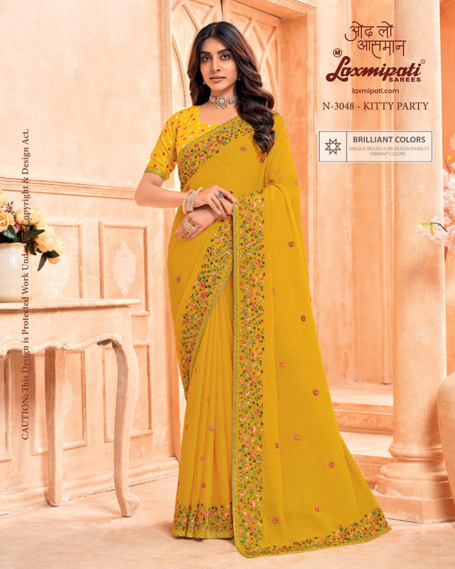 Laxmipati Hira Moti N-3048 - Yellow Chiffon Drape By Sanskar Sarees