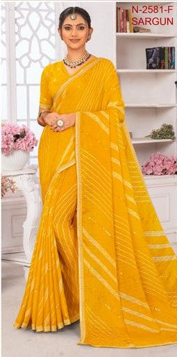 Laxmipati Sargun N-2581-F - Yellow Chex Chiffon Drape By Sanskar Sarees