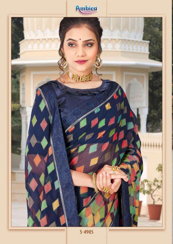 Ambica Rasika Am-4905 Multicolor Brasso Saree