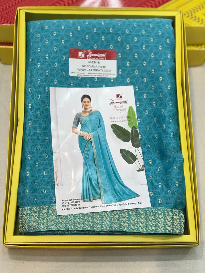 Laxmipati Alia N-2816 - Sky Blue Silk Chiffon Drape By Sanskar Sarees