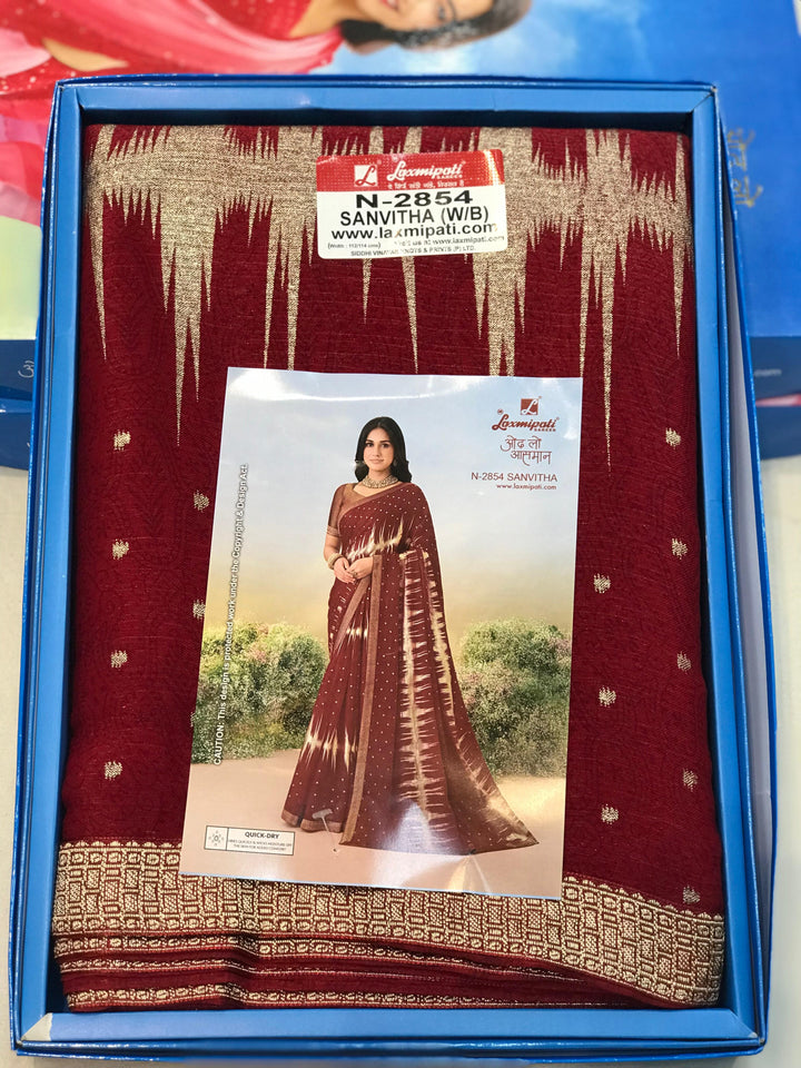 Laxmipati Anaya N-2854 - Maroon Silk Chiffon Drape By Sanskar Sarees