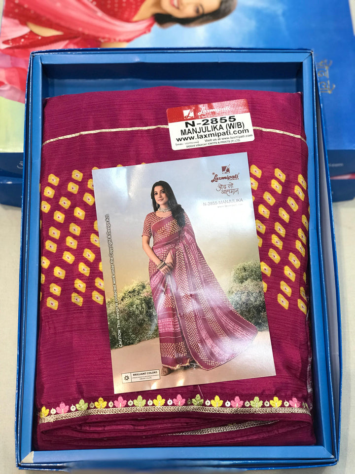Laxmipati Anaya N-2855 - Dark Onion Silk Chiffon Drape By Sanskar Sarees
