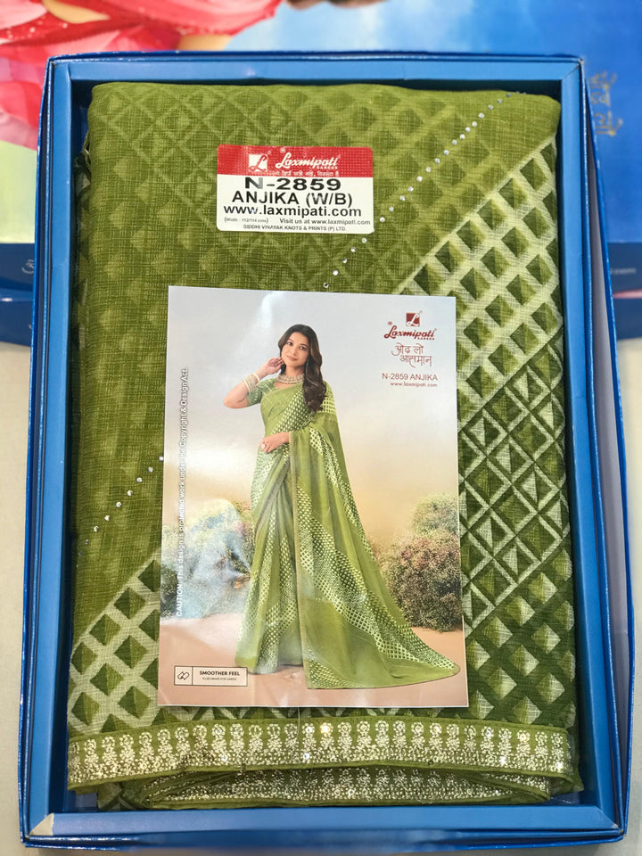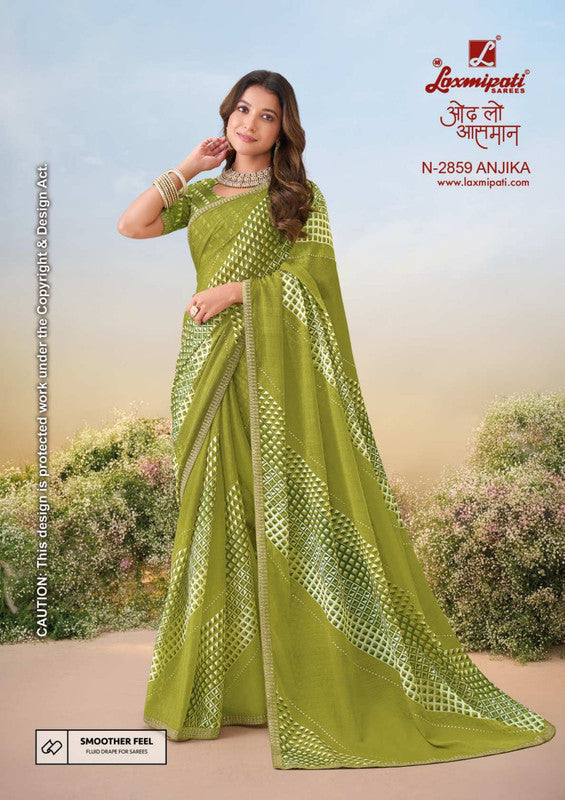 Laxmipati Anaya N-2859 - Mehendi Chiffon Drape By Sanskar Sarees