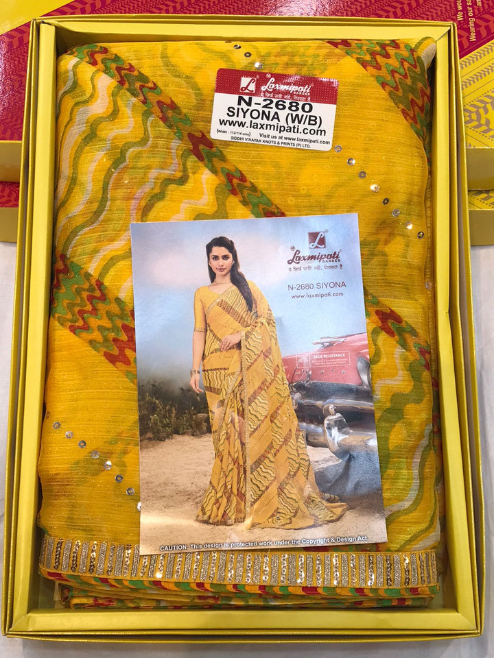 Laxmipati Barish N-2680 - Yellow Sparkle Chiffon Drape By Sanskar Sarees