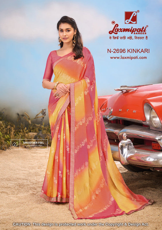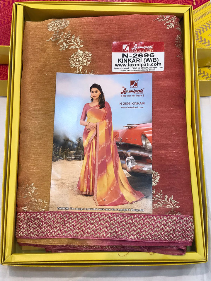 Laxmipati Barish N-2696 - Peach Metalic Chiffon Drape By Sanskar Sarees
