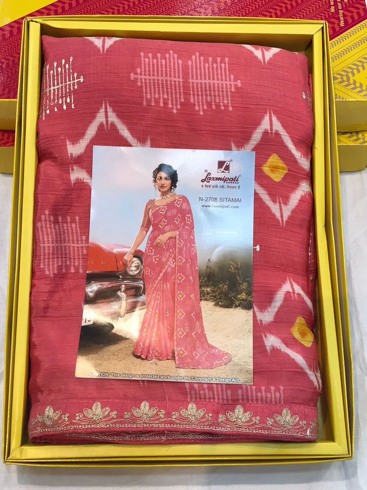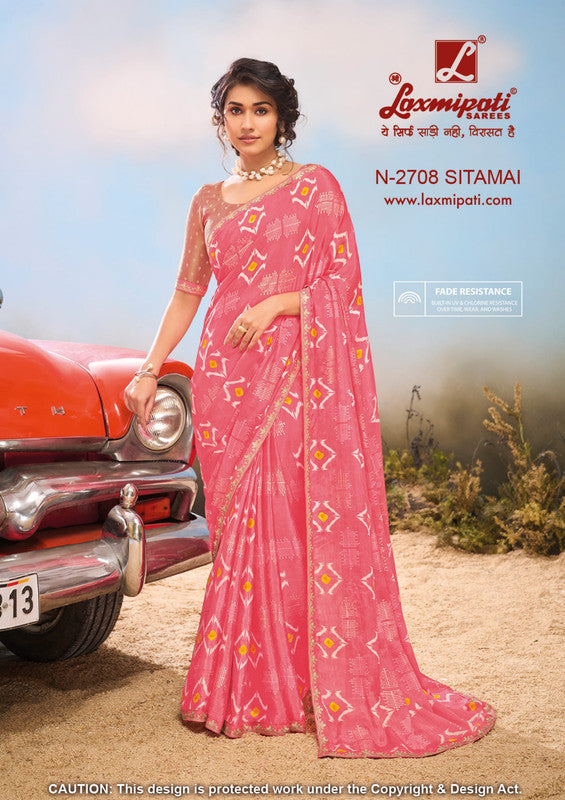 Laxmipati Barish N-2708 - Pink Silk Chiffon Drape By Sanskar Sarees
