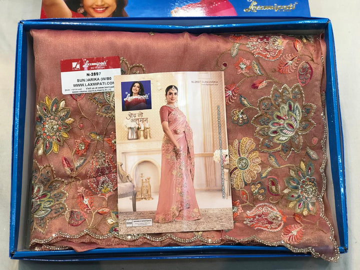 Laxmipati Chakor N-2897 - Peach Organza Drape By Sanskar Sarees