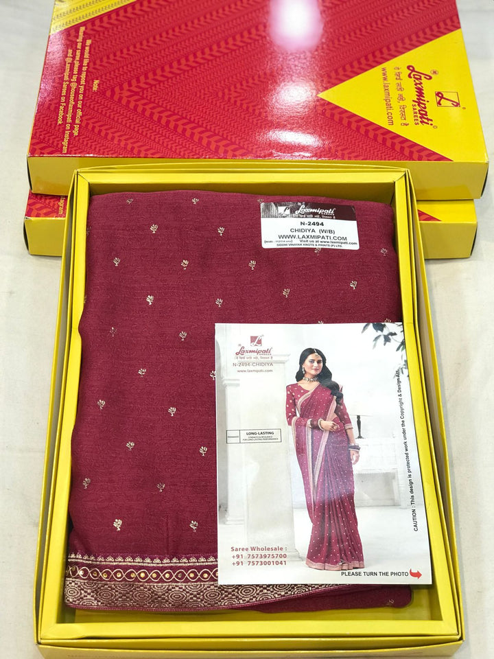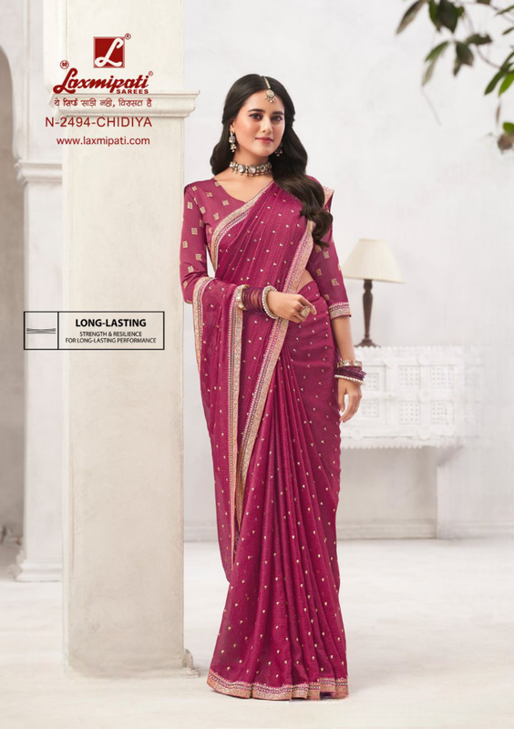 Laxmipati Chameli N-2494 Onion Metallic Chiffon Saree