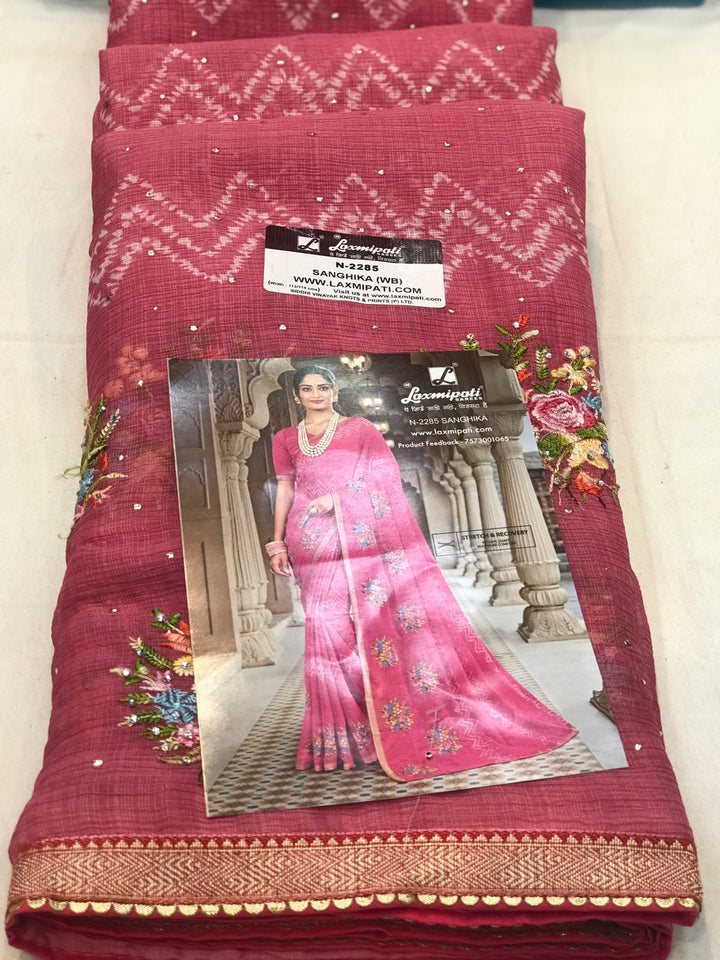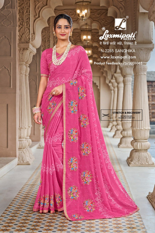 Laxmipati Dairy Milk N-2285 Pink Chiffon Saree