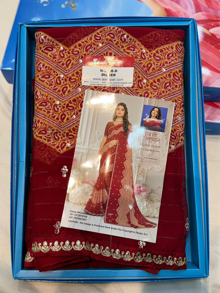 Laxmipati Dilber N-2126-D - Maroon Chiffon Drape By Sanskar Sarees