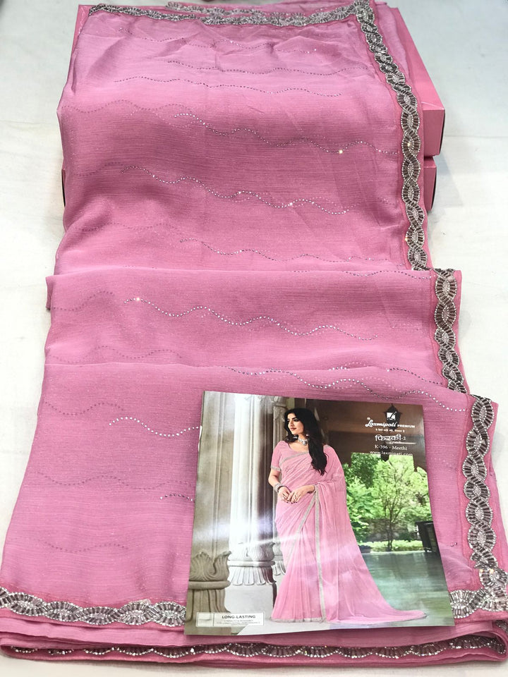 Laxmipati Firki-2 K-396 Pink Sparkle Chiffon Saree