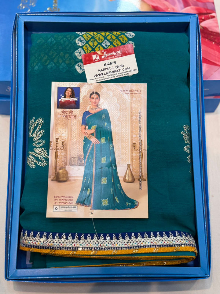 Laxmipati Ghoomar N-2976 - Blue Peacock Moss Chiffon Drape By Sanskar Sarees