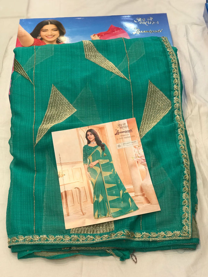 Laxmipati Hira Moti N-3055 - Pista Green Chiffon Drape By Sanskar Sarees