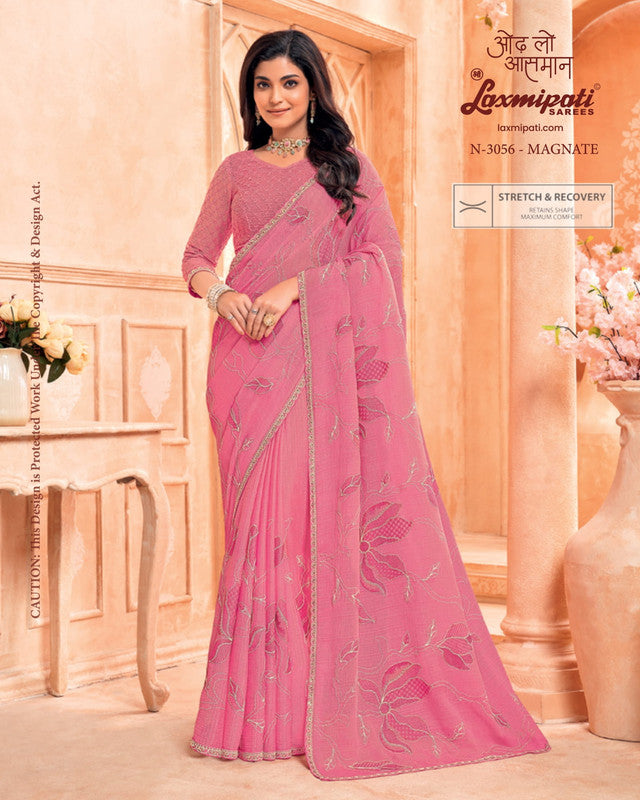 Laxmipati Hira Moti N-3056 - Light Pink Chiffon Drape By Sanskar Sarees