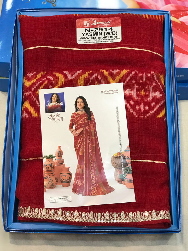 Laxmipati Ishita N-2914 - Red Chiffon Drape By Sanskar Sarees