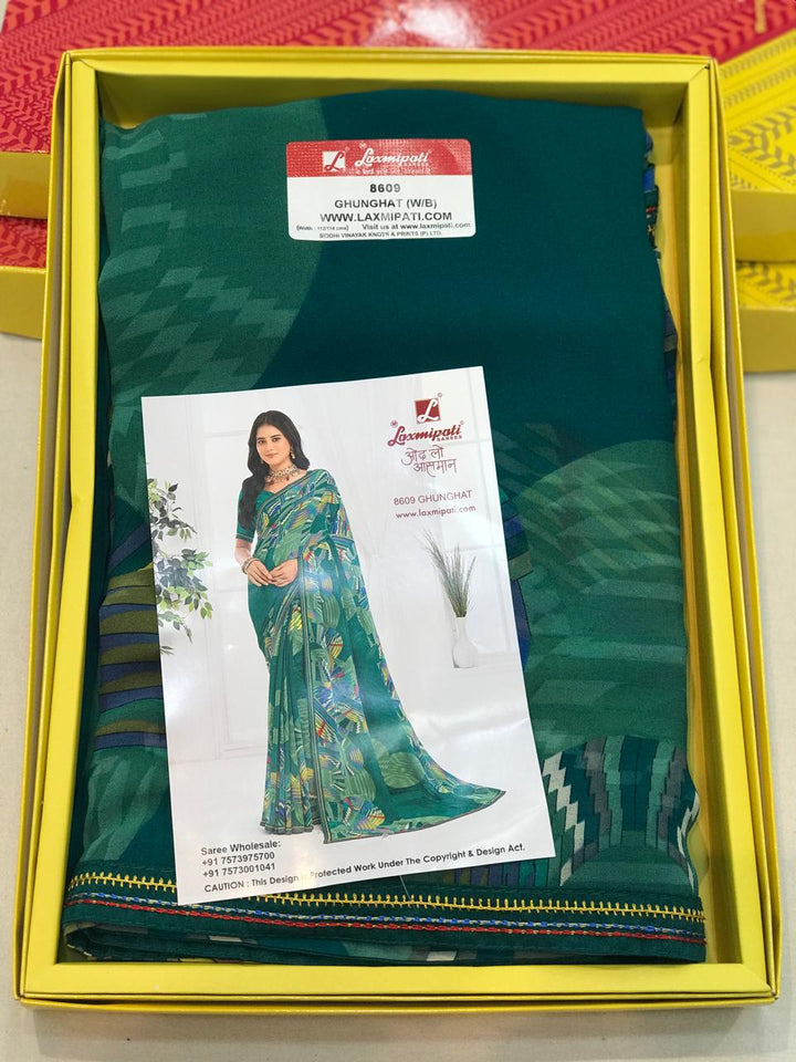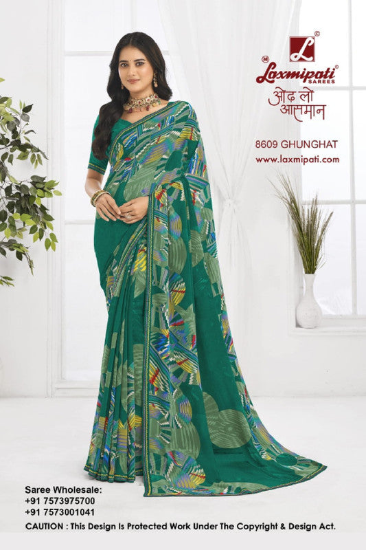 Laxmipati Jaayphal 8609 - Peacock Green Georgette Drape By Sanskar Sarees