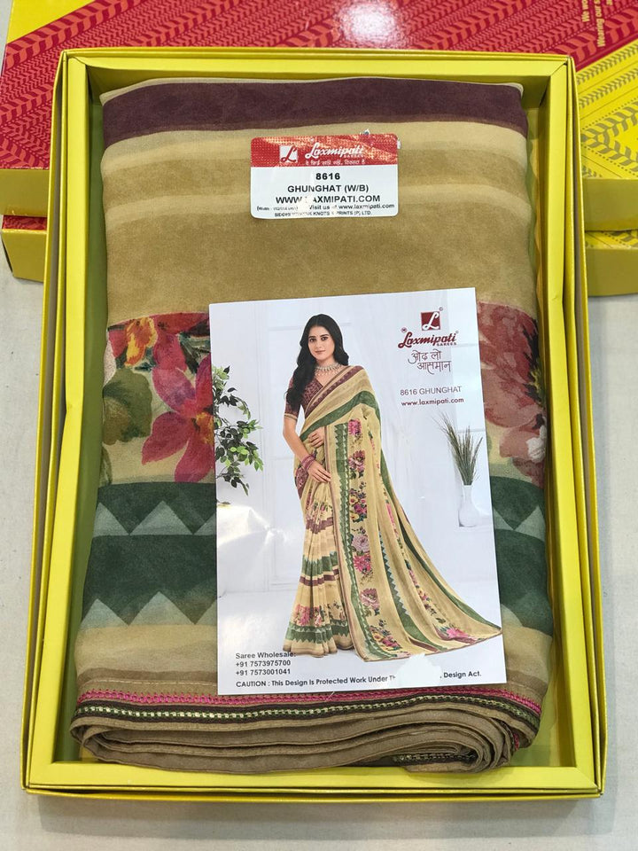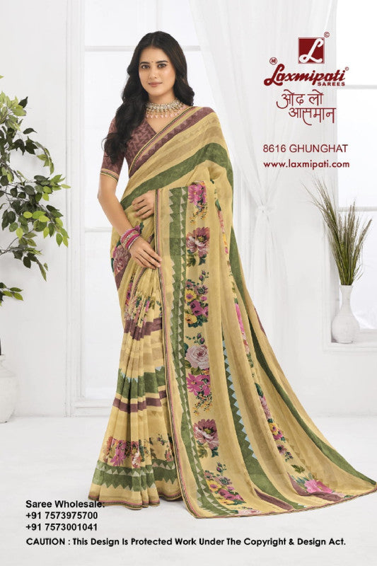 Laxmipati Jaayphal 8616 - Cream Georgette Drape By Sanskar Sarees