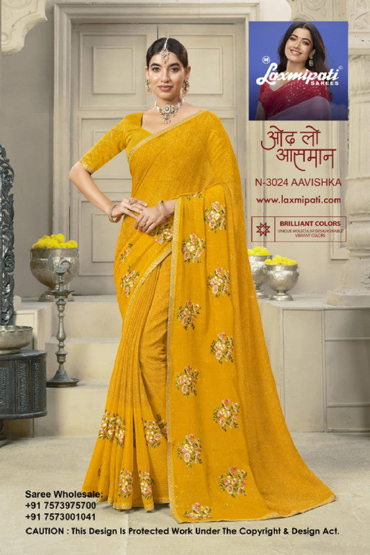 Laxmipati Krack Jack N-3024 - Yellow Marble Chiffon Drape By Sanskar Sarees