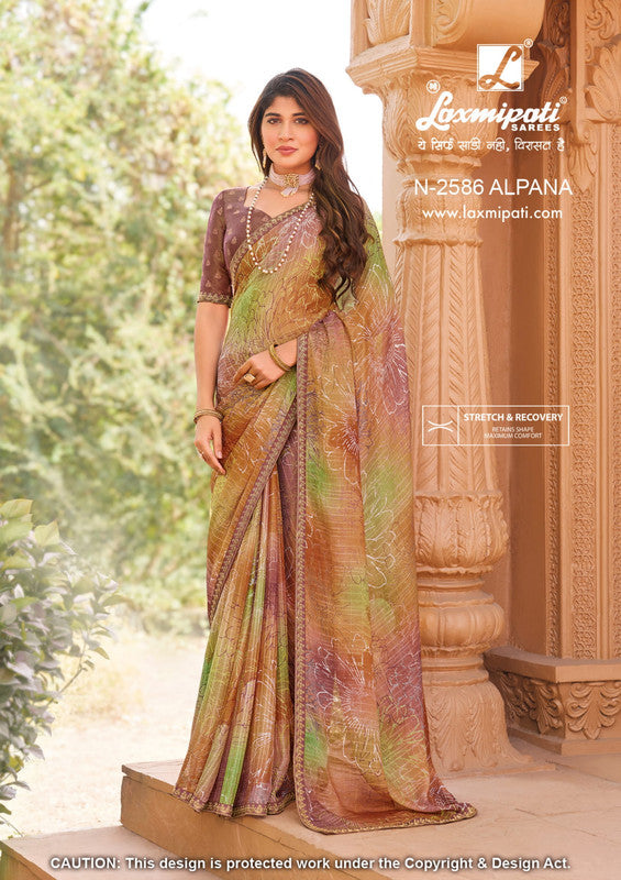 Laxmipati Madhubala N-2586 Pink Marble Chiffon Saree