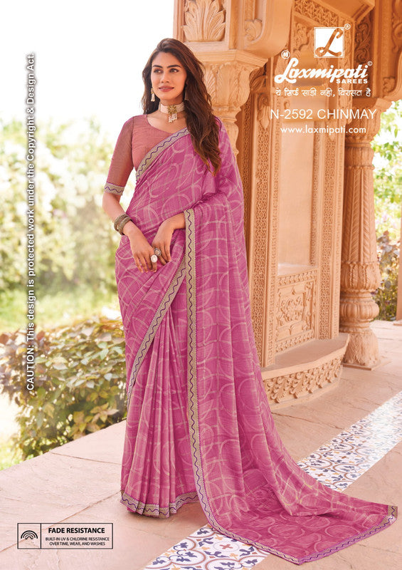 Laxmipati Madhubala N-2592 Pink Metallic Chiffon Saree