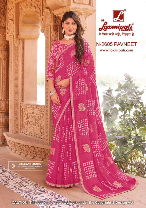 Laxmipati Madhubala N-2605 Pink Sparkle Chiffon Saree