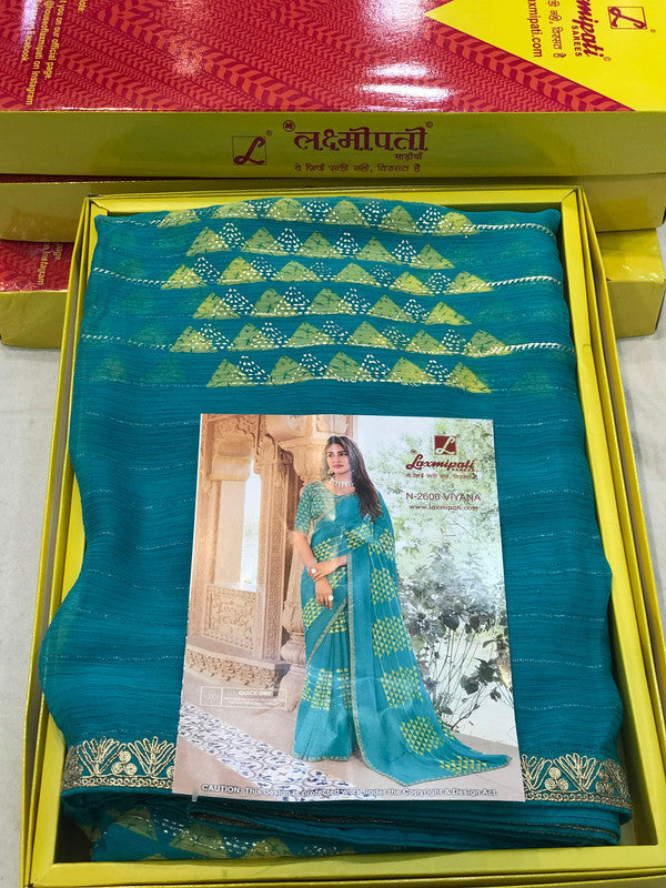 Laxmipati Madhubala N-2606 Blue Sparkle Chiffon Saree