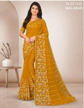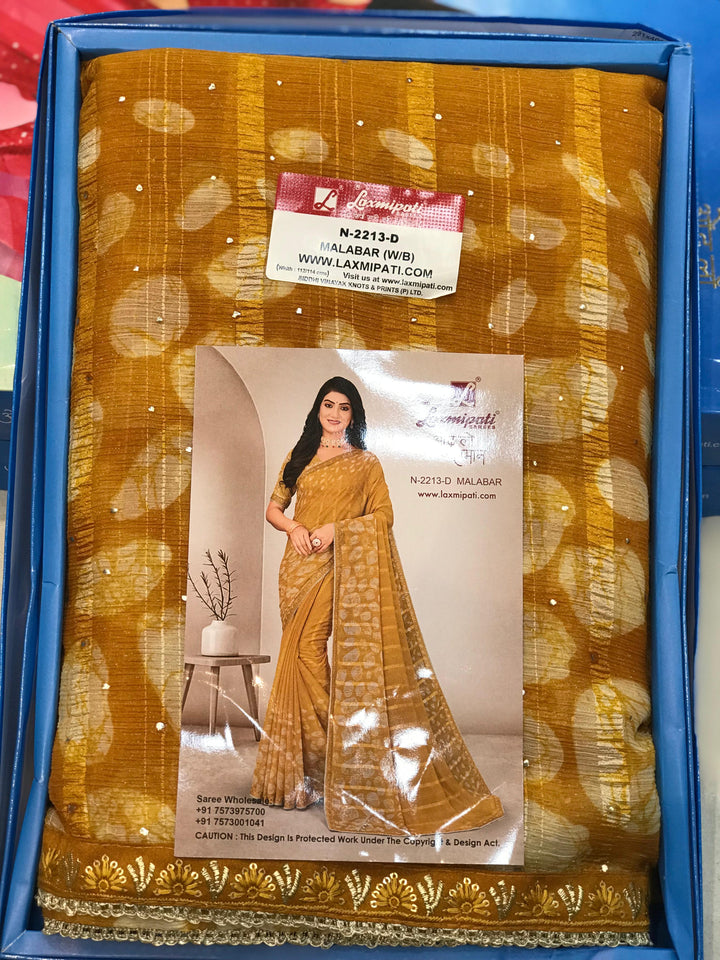 Laxmipati Malabar N-2213-D - Golden Silk Chiffon Drape By Sanskar Sarees